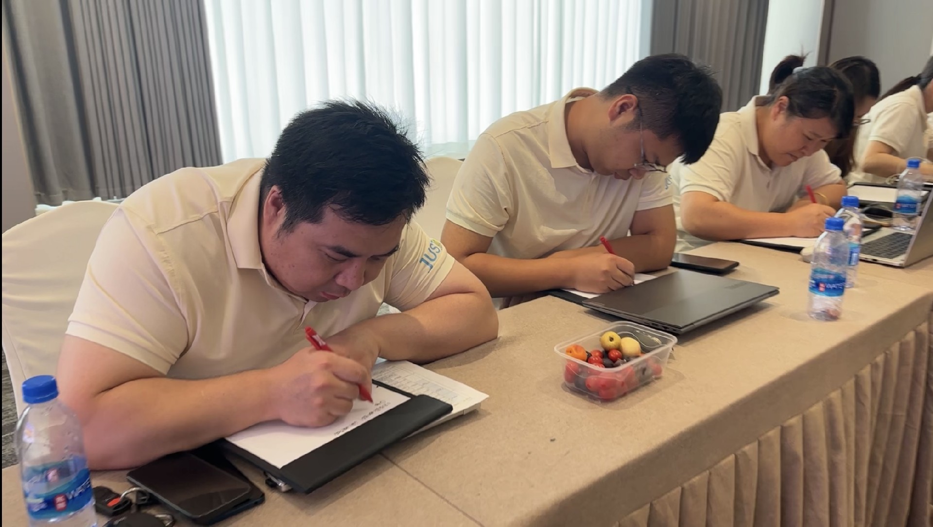 在主题讨论环节,大家思维碰撞、畅所欲言。围绕“团队带头人应具有哪些特质?”“技术与销售团队困难解决”“销售额如何突破5000万等话题展开热烈讨论”,成员们各抒己见,提出了许多建设性意见,为公司发展注入智慧源泉。