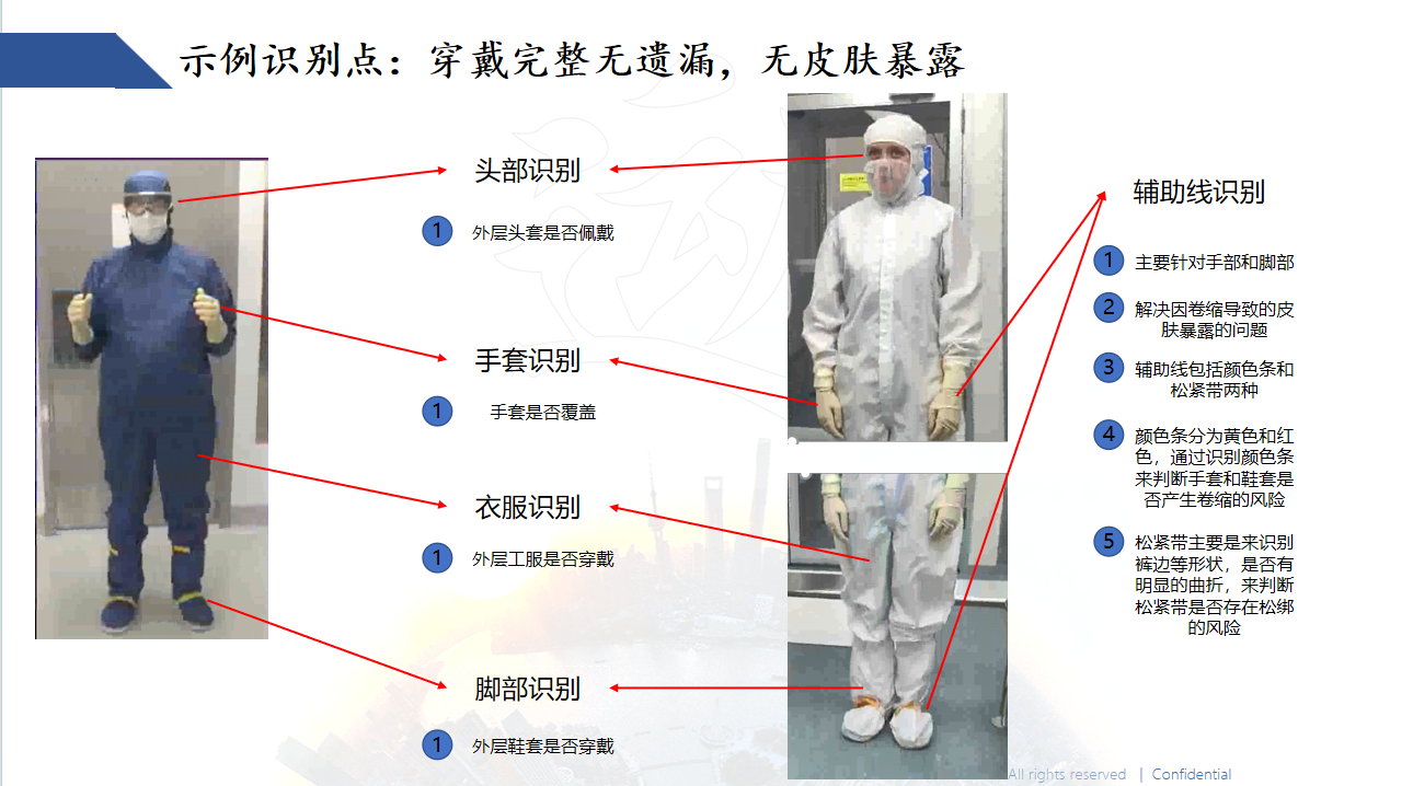 针对某上市集团生物公司车间的不同区域,k8凯发制定差异化 AI 识别策略。关键区域(如主产品车间分装区、全灭活分装车间等)全面启用穿戴分析、各类违规行为检测算法,非关键区域根据风险等级选择性部署算法。